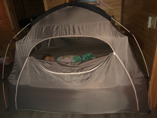 As far as sleeping arrangements…… We have done the air mattress with pool noodles around the edge-does not work for him, he can roll up and over them. In the camper, we bring toddler rails and place them where necessary. When we stayed in a cabin this past July we tried something new. We bought a bed tent and placed an air mattress inside. One big enough and thick enough to make the tent a little taunt to keep him from falling in between the tent and mattress. It wasn’t perfect and it required a lot of fine tuning, but it worked for the most part. You can buy travel beds for special needs kids but they are ridiculously over priced and just not worth it when you don’t even know if it will work. It’s all about trial and error.